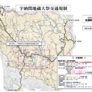 ※期間中は全長寺周辺で、歩行者として露店販売やイベント等が行われ、交通規制が行われます(8時30分から17時まで、但し3月13日は16時まで)。